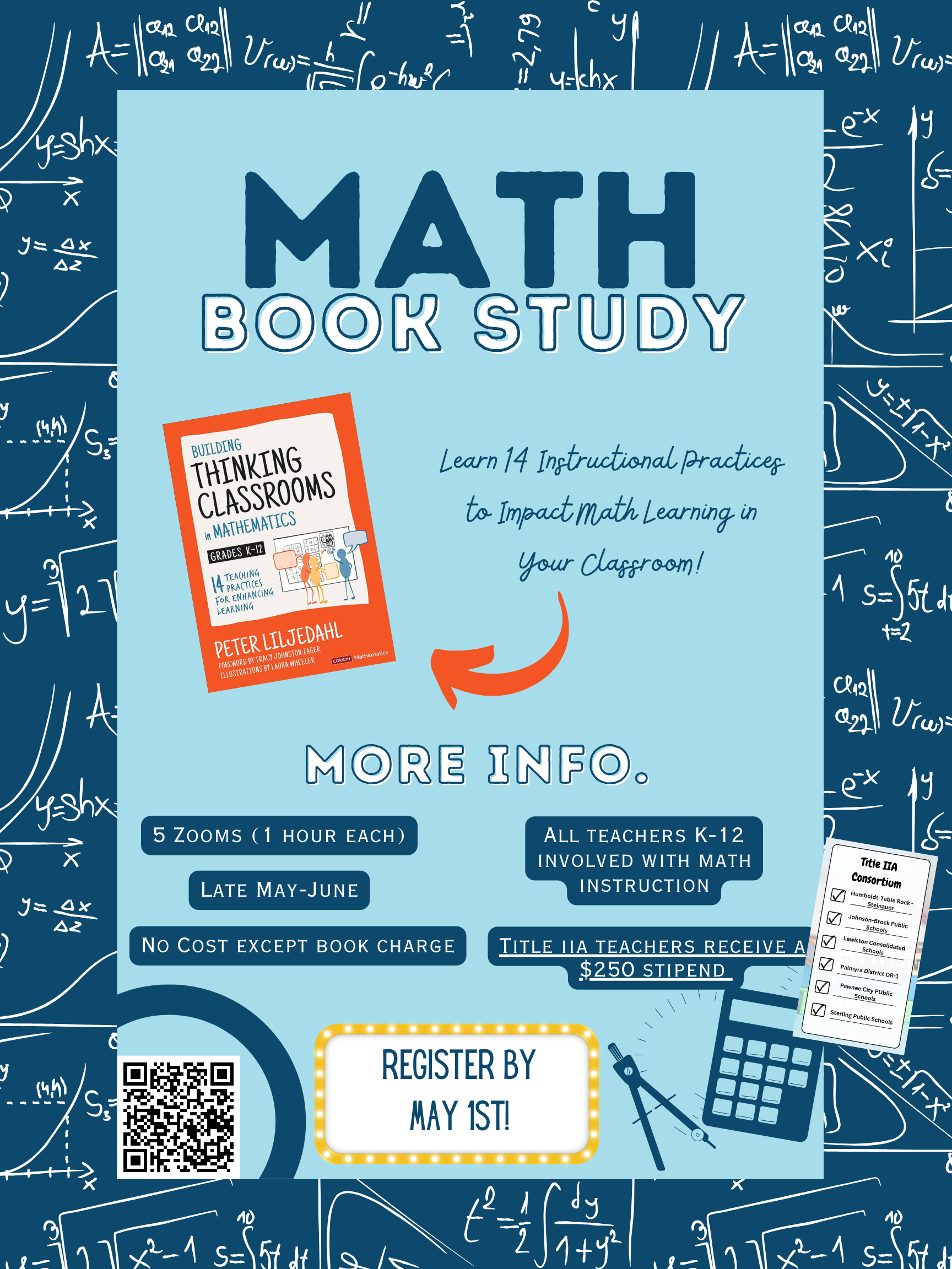 This books study consists of five, one-hour Zoom sessions in late May and June for all teachers K-12 involved with math instruction. There is no cost to participate, non Title IIA districts will pay for books. Title IIA teachers will receive a $250 stipend!