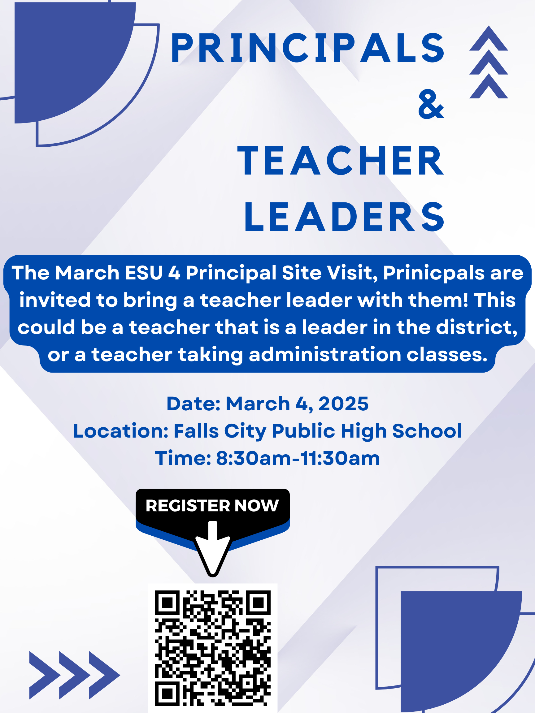 Join the ESU 4 Team for this year's Principals' Cadre meetings. This is an opportunity for building leaders to network, discuss relevant issues and share best practices in education. |
