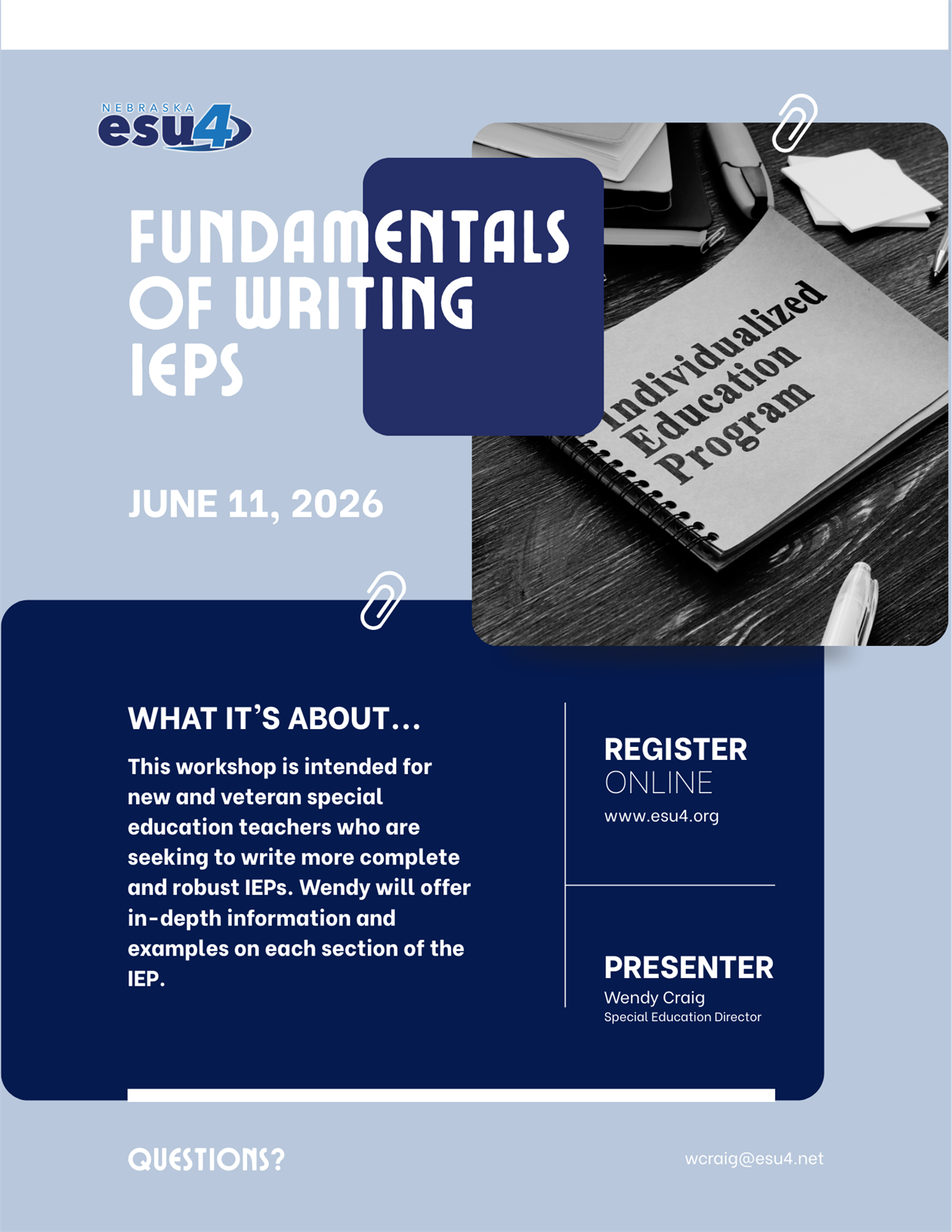 The Fundamentals of IEP Writing workshop is designed to turn the "paperwork mountain" into a clear, manageable path. This session focuses on moving beyond basic compliance to create ironclad, robust IEPs that truly support student success while protecting your district.
